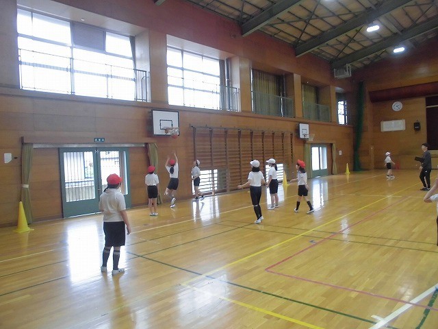 チームでバスケットボールの試合をしました。ルールを守り仲間を信じて全力でプレーしました。試合後の整列とあいさつまで真剣におこないました。