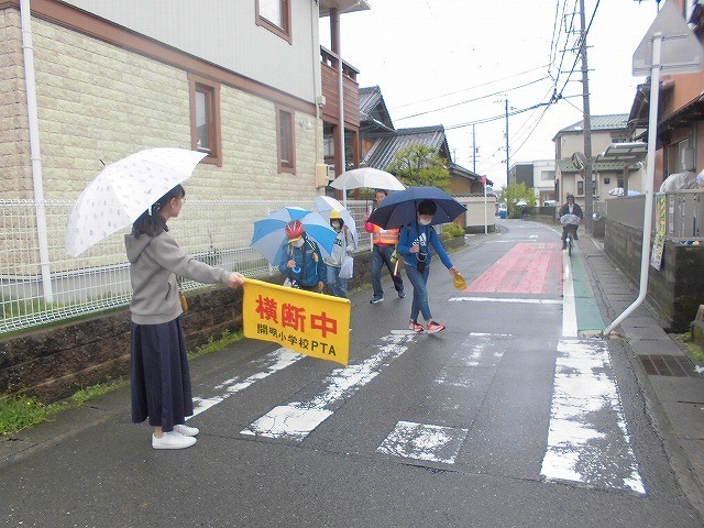 細かい雨の中の登校で今週は始まりました。今朝もPTAと地域の方々の優しい心遣いと温かい見守りの中で安全に登校を完了しました。毎日本当にありがとうございます。
