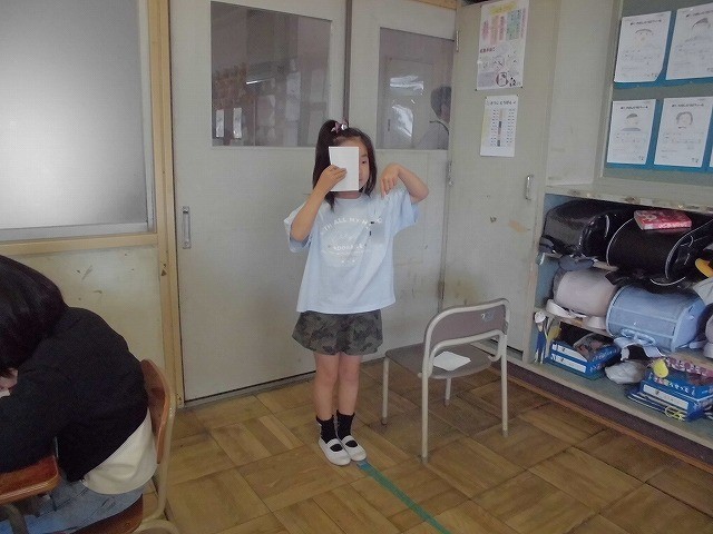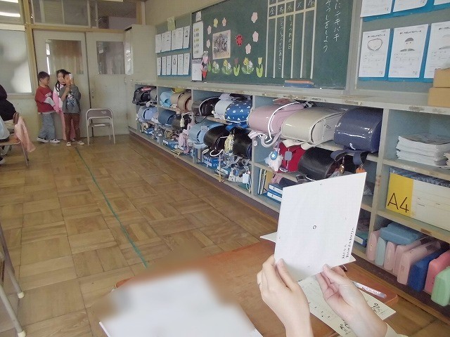 視力検査を行いました。担任の先生が示したランドルト環の空いている方向を指で示しました。順番を待っている子も自分のすることをしっかりと行い、静かに待つことができました。