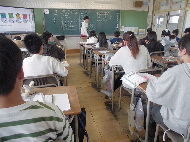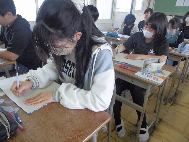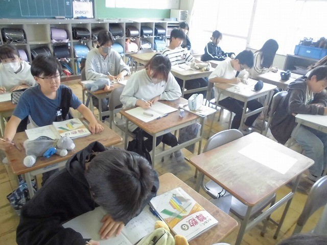 「文字と式」の学習です。いろいろな場合に当てはまる数を文字に置き換えて式を作りました。中学校での学習につながる大切なところです。みんな集中して学習に励みました。
