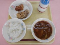 今日の献立は「五目ソフトめん・牛乳・さつまいもスティック」です。