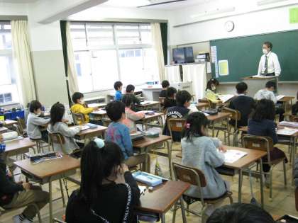 2年生の授業の様子です。みんなしっかり先生の方を見ています。