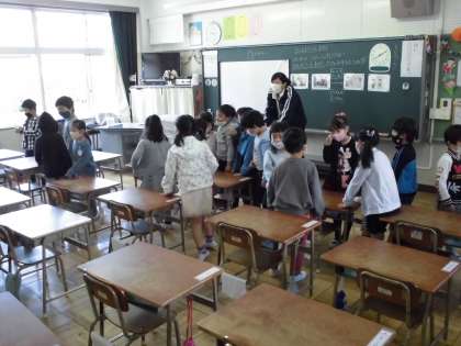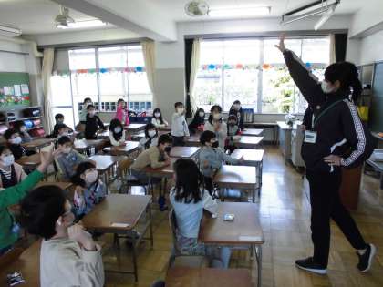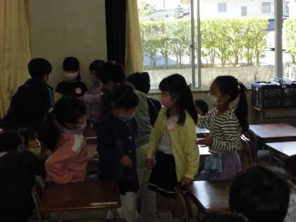朝の連絡や配付物の確認とともに、ジャンケン大会やグループづくり大会を行っていました。