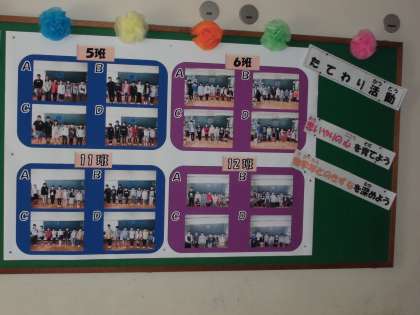 先週行われた「たてわり活動」のグループ写真が、一覧できるように掲示されました。