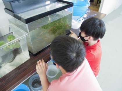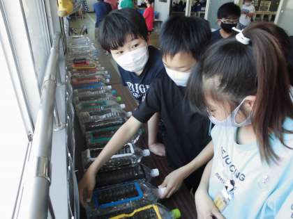 今後は、子どもたちが準備したペットボトルでメダカを飼って、観察できます。大切に育てましょうね。