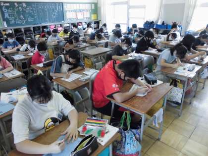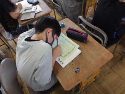 道徳の授業で、1・2年生から花や野菜の苗をもらったお礼のお手紙を書いていました。