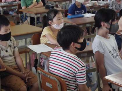 本日は3・4年生を対象にして、読み聞かせをしていただきました。子どもたちは、どの子も本の内容に聞き入っていました。