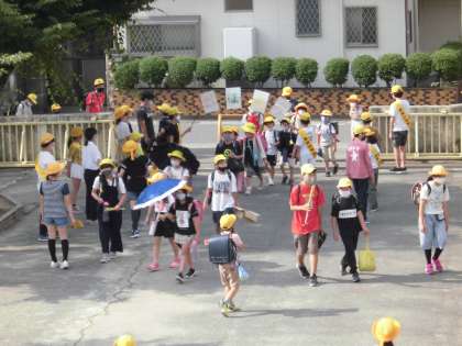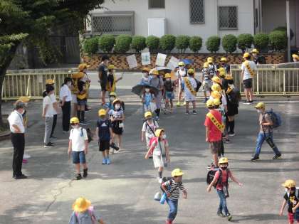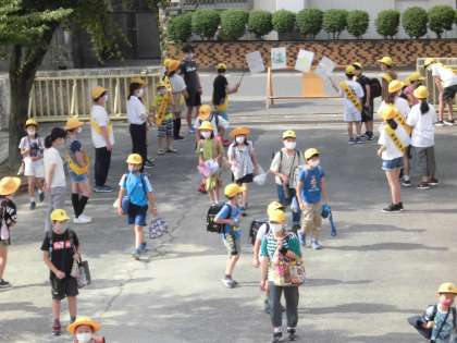 本日の下校完了時刻は、1・2年生が14:50、3〜6年生が15:50です。