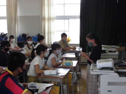 英語の授業で、みんなの前で発表しました。