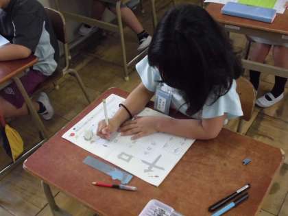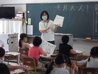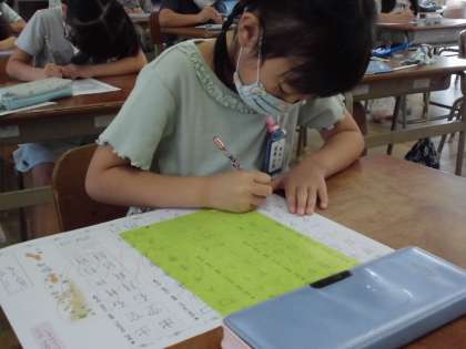 書写の授業で、「画の方向に気をつけて」をめやすに、漢字の練習をしました。