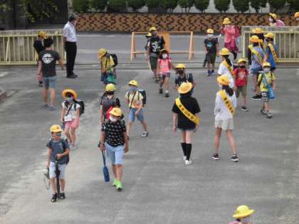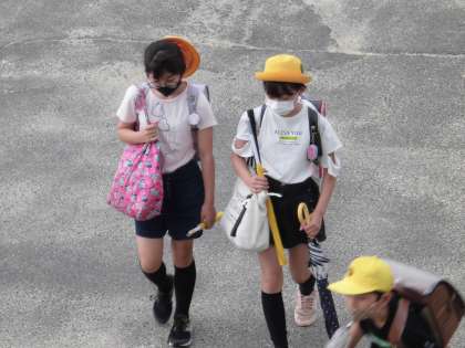 本日の下校完了時刻は、1・3年生が14:50、2・4〜6年生が15:50です。