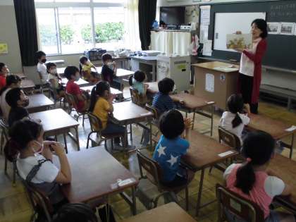 本日、1・2年生を対象に、グループトーク(読み聞かせ)をしていただきました。どの子も目を輝かせながら聞いていました。