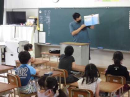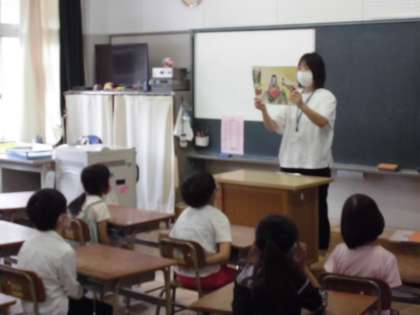 本日、1・2年生を対象に、グループトーク(読み聞かせ)をしていただきました。どの子も目を輝かせながら聞いていました。