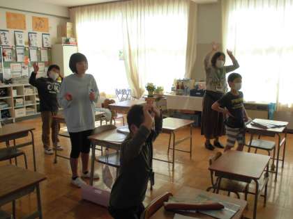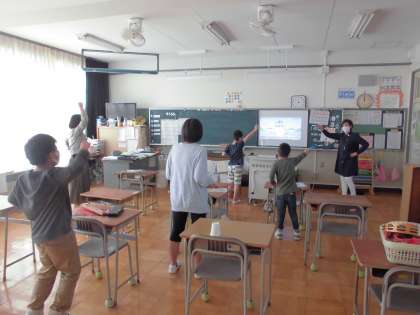 ミッキーマウスマーチの動画を見ながら、歌って踊りました。