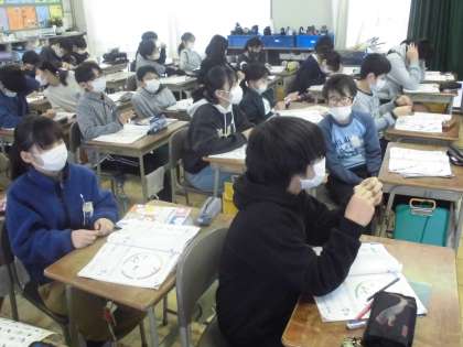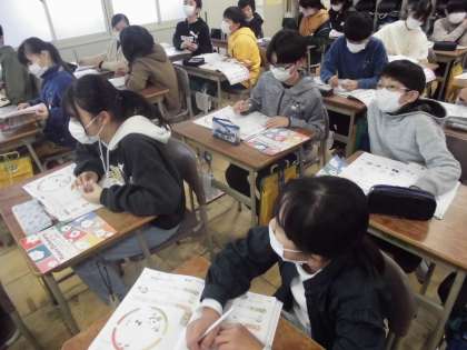 「I ate 〜」の英会話を聞いて、何を食べたかを聞き取る練習をしました。