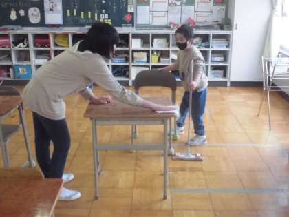 それぞれの役割分担にしたがって、そうじにも頑張って取り組んでいます。