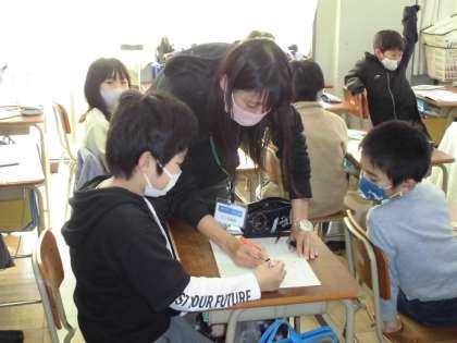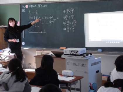 分数のたし算の方法を知り、練習問題をして先生に丸を付けてもらいました。