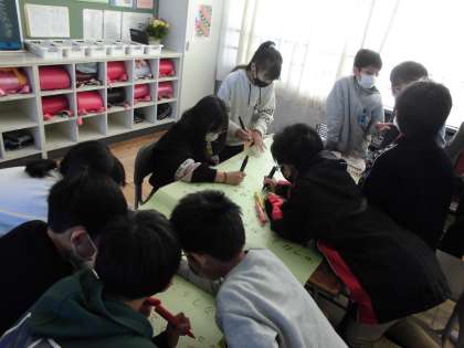 今日は、たてわり活動がありました。3学期に行われるたてわり祭りの準備として、5年生はルール説明の紙を作成しました。