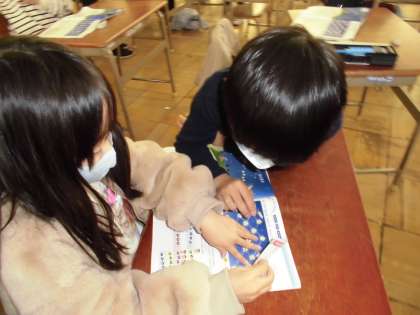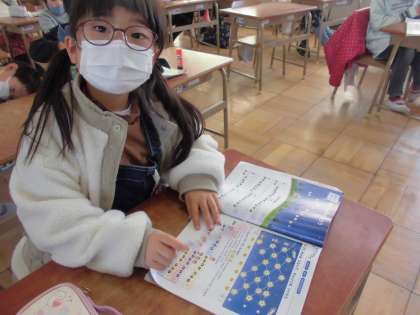 ドレミファソの音を線でつないで旋律を作りました。選び方によって、たくさんの種類の旋律ができました。
