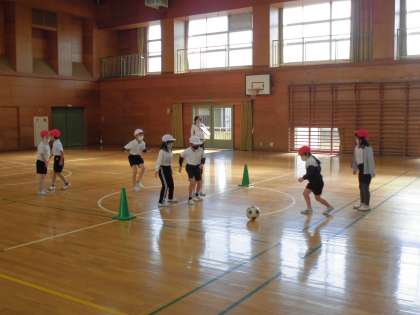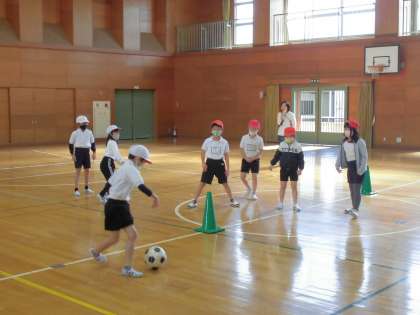 体育では「たまごわりサッカー」を、算数では九九の暗唱テストをしました。