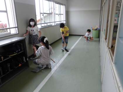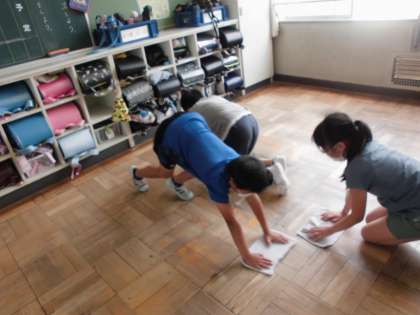 そうじの時間の様子です。教室もろうかも、きれいになるよう掃除をすることができました。