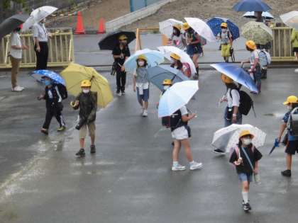 本日の下校完了時刻は、1・2年生が14:50、3〜6年生が15:50です。