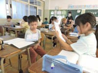 紙版画でつくった「動物園」をみんなで見合い、友達のいいところを見つけました。