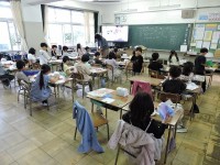 遊具で遊んだ楽しい思い出を絵にします。まずは何の遊具で遊んだことがあるかを思い出し、どの遊具で遊んだ思い出を絵にするのかを考えました。考えがまとまった人から手を挙げて合図しました。次に、実際に遊具を見学した後で思い出を描きました。思い出も絵を描くのも楽しいです。