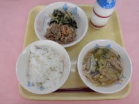 〇今日の献立 ソフトめん・牛乳・五目ソフトめん(汁)・鶏肉とれんこんの黒糖がらめ...