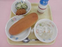 〇今日の献立 サンドイッチロールパン・牛乳・白身魚フライ・コールスローサラダ・ク...