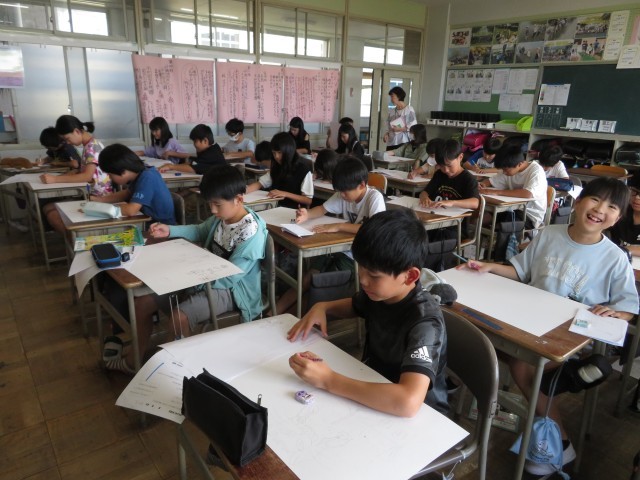 注文の多い料理店の話を聞いて、自分で場面を想像して絵を描きます。