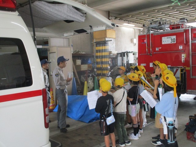 署員の方から、消防車や救急車などについて様々な説明を聞きました。