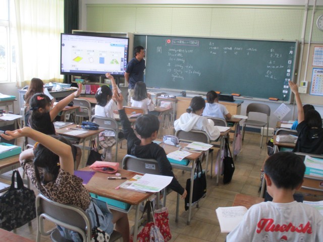1組は算数、2組は書写の時間