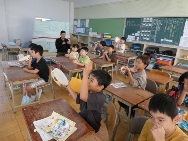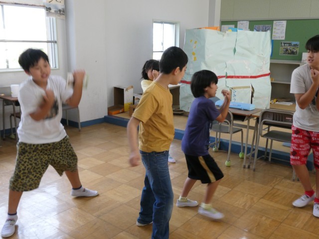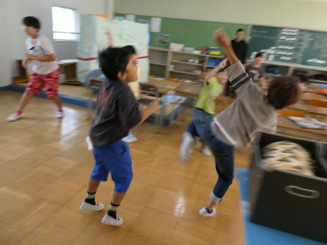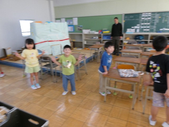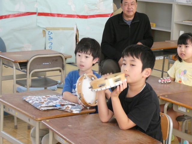 今日の音楽はリズム運動、打楽器練習、ダンスを行いました。みんな1時間ノリノリで楽しく過ごしました。