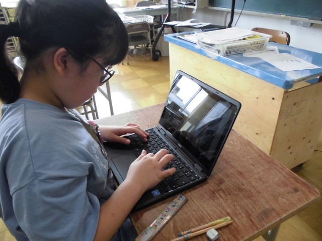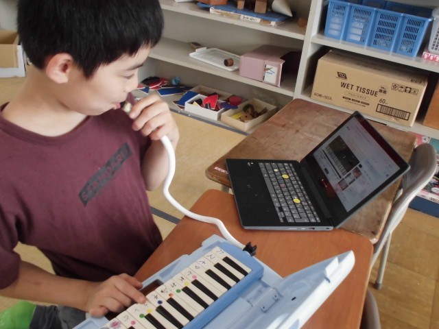 タブレットを活用し、タイピングをしたり、鍵盤ハーモニカの練習をしたり、折り紙の折り方を調べたりしました。
