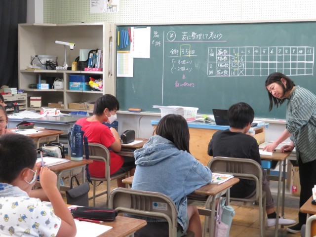 今日は規則正しく並ぶ数を、表を使って求める学習をしています。