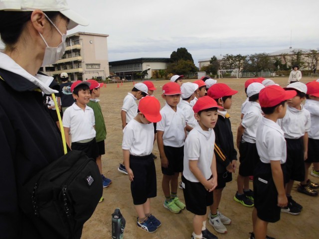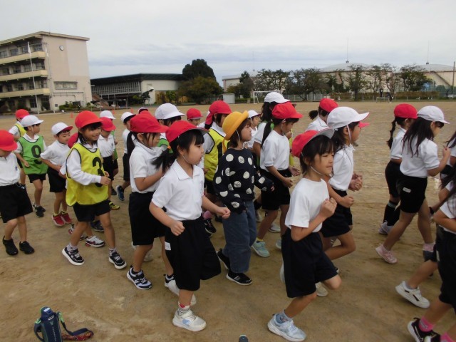 1,2年生は、運動場で徒競走の並び方や走り方の練習をがんばりました。