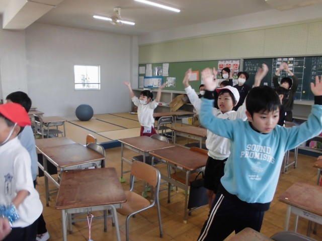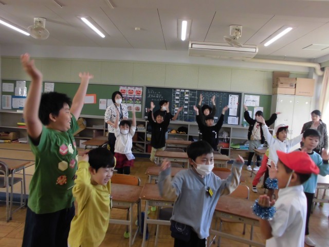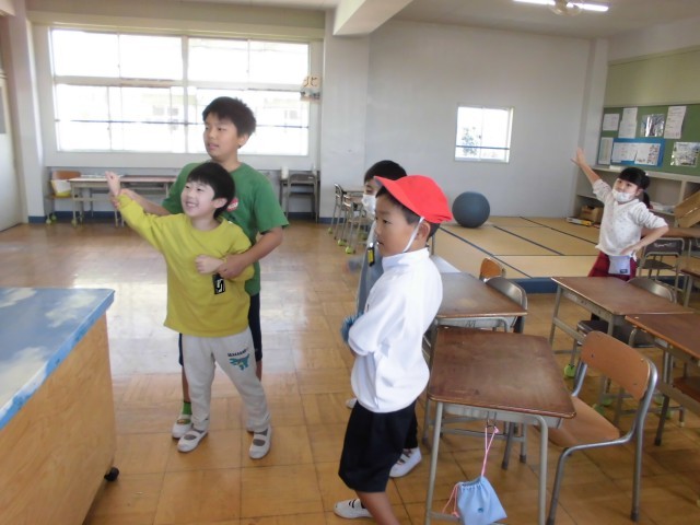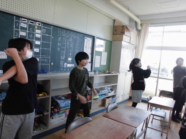 その後は、間近に迫った運動会のストレッチ体操を合同練習しました。