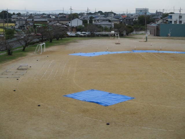 本日午後より雨が降り出し、運動場は十分な準備ができておりません。