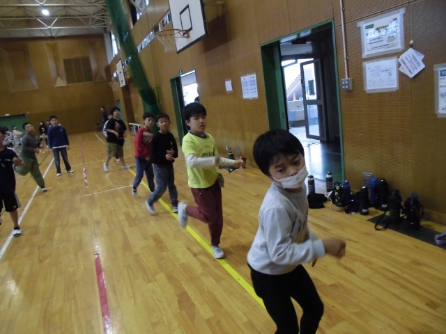 運動会は延期になりましたが、3・4年生は体育館で練習をがんばっていました。