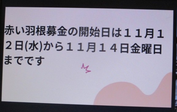 11月11日(火) 赤い羽根共同募金のお知らせ