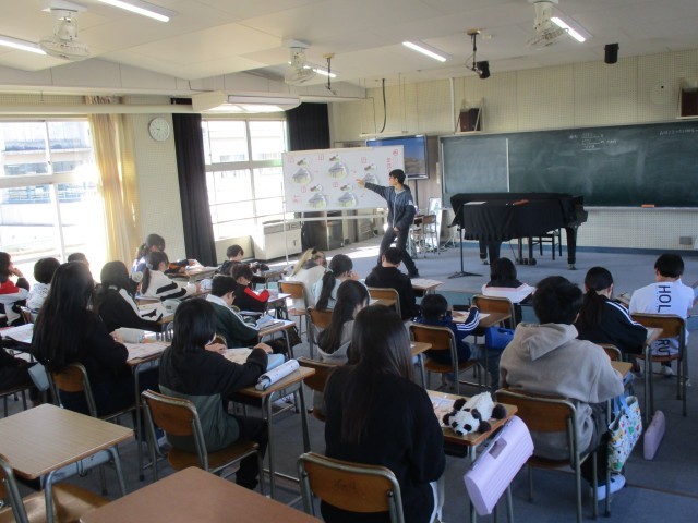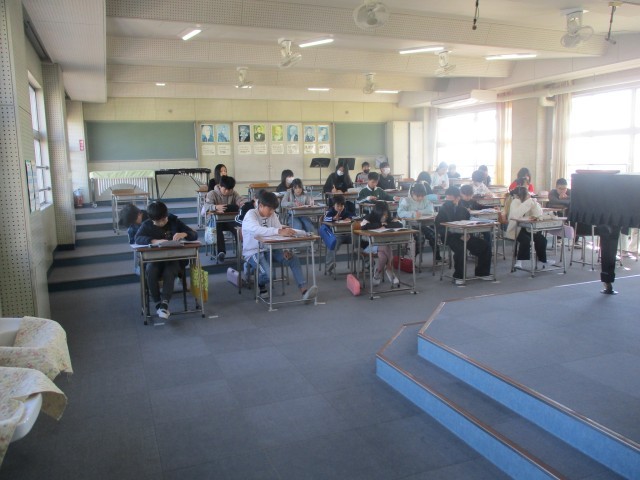 6年生は音楽で、楽器について学習を行っていました。集中して、楽器の音を聞いていました。
