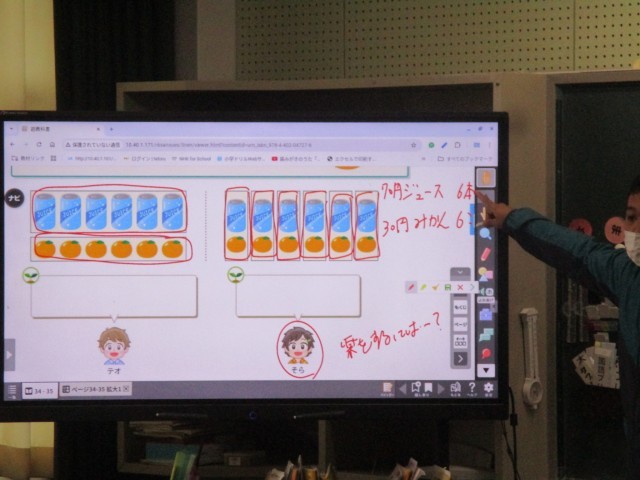 3年生は算数の「式と計算」について、取り組んでいます。自分なりの考えを発表しています。