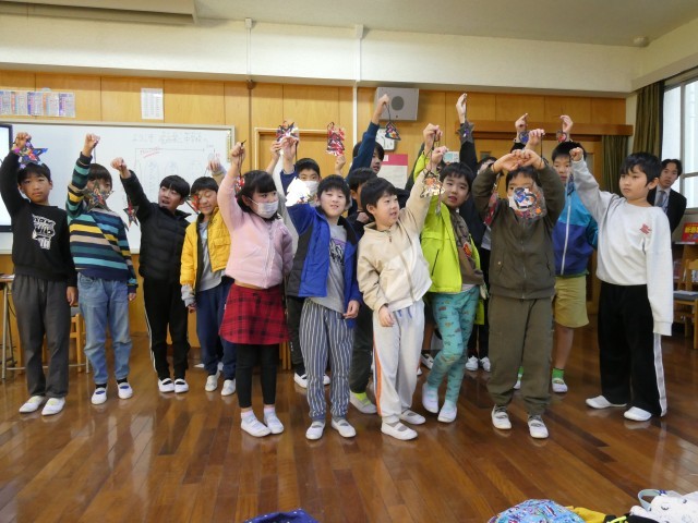 小学校との違いを題材にした〇×クイズに盛り上がったり、中学生手作りの景品に歓声をあげたりと、とても楽しく交流することができました。