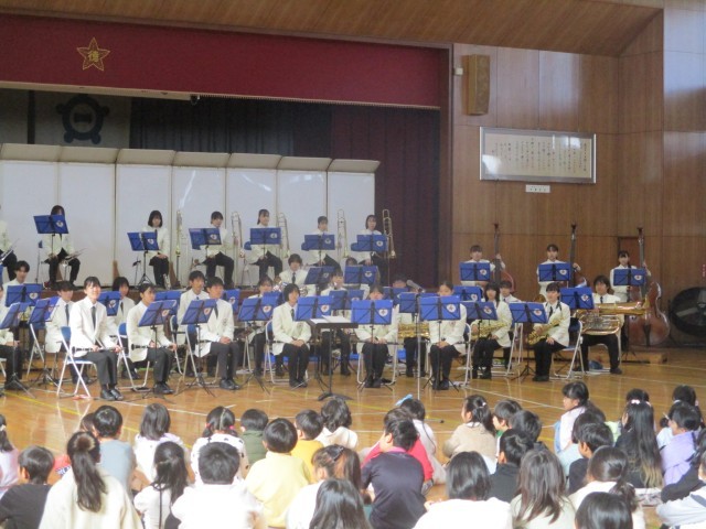 3時間目は、開校50周年を記念して、全校で木曽川高校ブラスバンド部の演奏を鑑賞しました。
