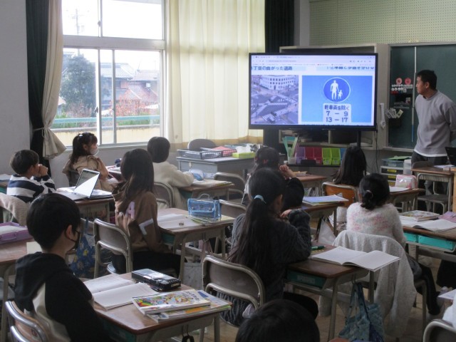 一宮市にある交通事故を防ぐ工夫について学びます。