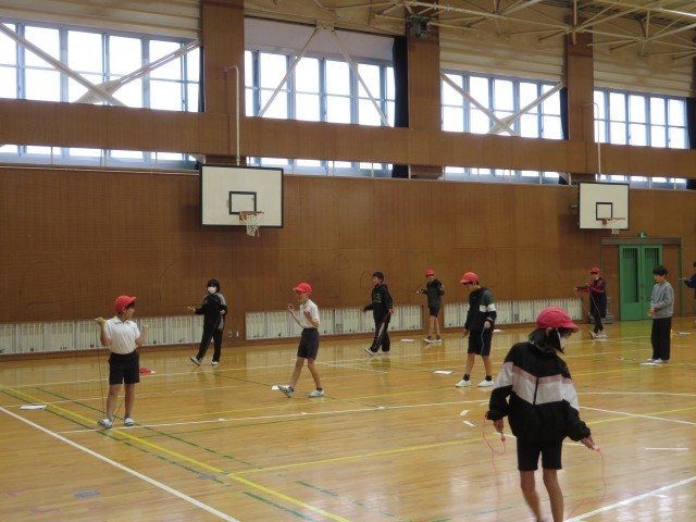 今日の体育は、なわとびフェスティバルに向けて練習です。
