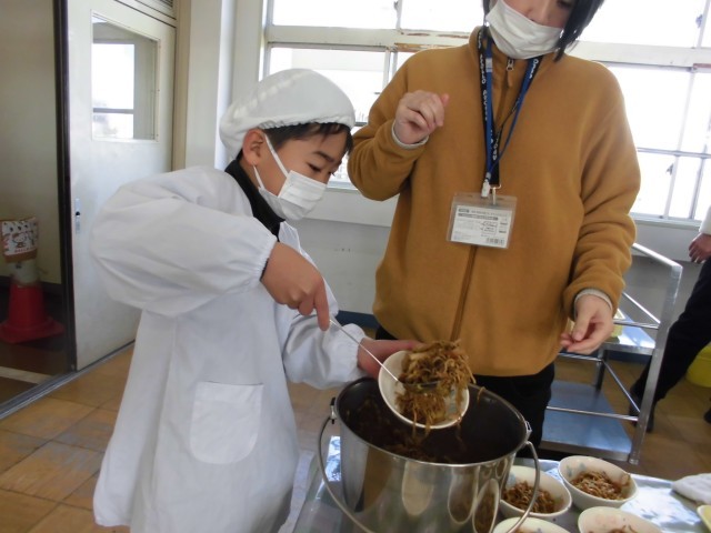 給食当番の仕事もがんばっています。