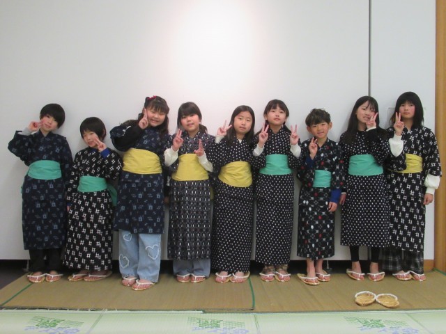 実際に昔の遊びをしたり、長着を着たりして、昭和時代の暮らしを体験して楽しんでいました。