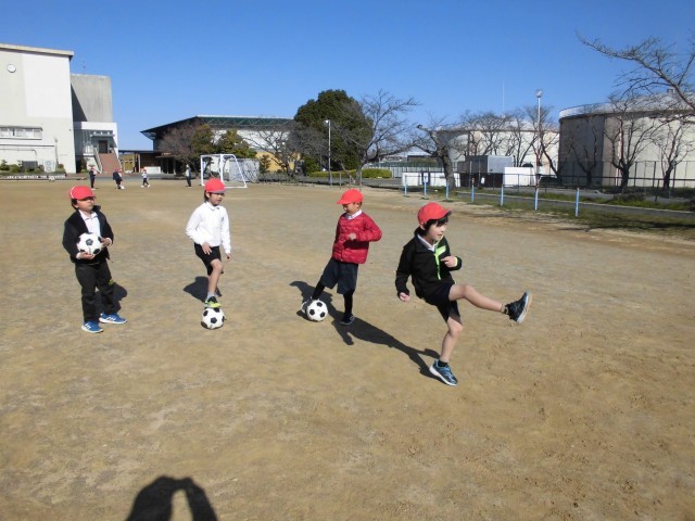 今日が、今年度最後の体育です。サッカーで楽しく体を動かしました。
